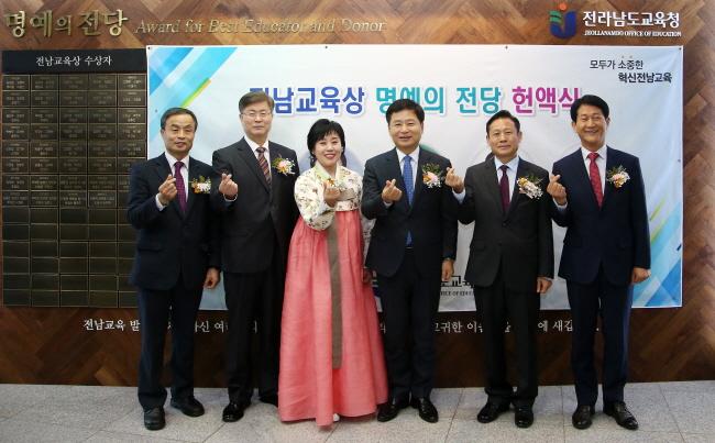 À̳¯ »óÀ» ¹ÞÀº 5¸íÀÇ Àü³²±³À°»ó ¼ö»óÀÚ´Â ±×µ¿¾ÈÀÇ Àü³²±³À° ¹ßÀü¿¡ ´ëÇÑ °ø·Î¸¦ ÀÎÁ¤¹Þ¾Æ Àü¶ó³²µµ±³À°Ã» 1Ãþ¿¡ ¸¶·ÃµÈ ¡®¸í¿¹ÀÇ Àü´ç¡¯¿¡ Çå¾×µÆ´Ù.