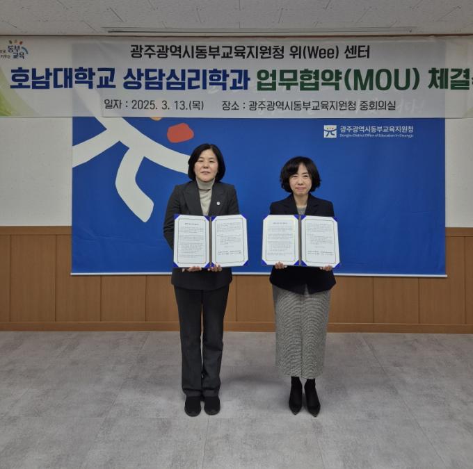 µ¿ºÎ±³À°Áö¿øÃ» ÁßȸÀǽǿ¡¼ 13ÀÏ °³ÃÖµÈ ¡®¸¶À½ ²ÞŰ¿ò ¸àÅ丵 »ç¾÷¡¯ ¾÷¹«Çù¾à½Ä¿¡¼ µ¿ºÎ±³À°Áö¿øÃ» À̸í¼ö ±³À°Àå°ú È£³²´ë »ó´ã½ÉÇаú ÀåÀº¿µ ÇаúÀåÀÌ ¾÷¹« Çù¾àÀ» ¸Î¾ú´Ù.