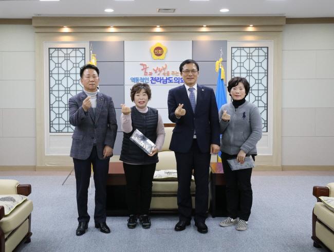 [È£³²¸ÅÀÏ´º½º = ÀÌÁ¾¹é ±âÀÚ] Àü³²µµÀÇȸ(ÀÇÀå ÀÌ¿ëÀç) ÀÇ¿øµéÀÌ ºÀ±Þ ³¡ÀüÀ» ¸ð¾Æ ¹ÌÈ­¿ä¿ø µî¿¡°Ô ¹æÇÑ Àå°©À» Àü´ÞÇß´Ù.