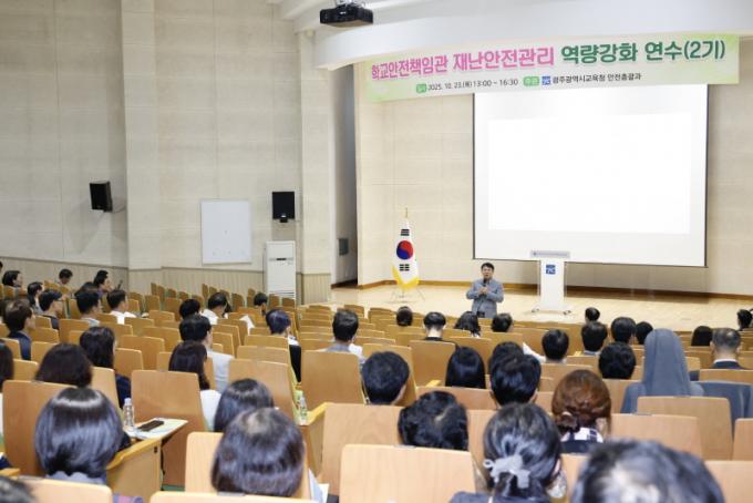 ÀÌÁ¤¼± ±¤Áֽñ³À°°¨ÀÌ 23ÀÏ ½Ã±³À°Ã»½Ã¹ÎÇùÄ¡ÁøÈï¿ø ´ë°´ç¿¡¼ ÁøÇàÇÑ ¡®Çб³¾ÈÀüÃ¥ÀÓ°ü ¿ª·®°È ¿¬¼ö¡¯¿¡¼ Àλ縻À» Çϰí ÀÖ´Ù. /±¤Áֽñ³À°Ã» Á¦°ø