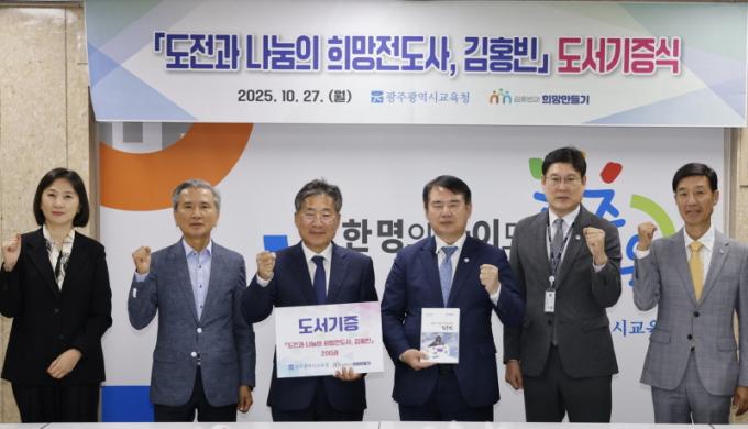 ÀÌÁ¤¼± ±¤Áֽñ³À°°¨(¿ÞÂÊ 4¹øÂ°)ÀÌ 27ÀÏ ½Ã±³À°Ã» »óȲ½Ç¿¡¼ ÁøÇàÇÑ ¡®µµÀü°ú ³ª´®ÀÇ Èñ¸ÁÀüµµ»ç, ±èÈ«ºó¡¯ µµ¼ Àü´Þ½Ä¿¡¼ ·ùÀç¼± (»ç)±èÈ«ºó°ú Èñ¸Á¸¸µé±â ÀÌ»çÀå(¿ÞÂÊ 3¹øÂ°) µî °ü°èÀÚ¿Í ±â³ä»çÁøÀ» ÃÔ¿µÇϰí ÀÖ´Ù.