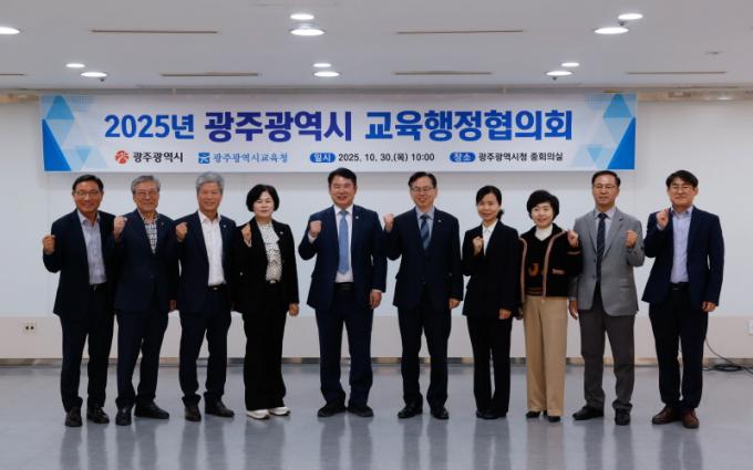 ÀÌÁ¤¼± ±¤Áֽñ³À°°¨(¿ÞÂÊ 5¹øÂ°)ÀÌ 30ÀÏ ±¤ÁÖ½Ãû ÁßȸÀǽǿ¡¼ ÁøÇàÇÑ ¡®2025³â ±¤ÁÖ±¤¿ª½Ã ±³À°ÇàÁ¤ÇùÀÇȸ¡¯¿¡¼ °í±¤¿Ï ±¤Áֽà ºÎ½ÃÀå µî °ü°èÀÚ¿Í ÇÔ²² ±â³ä»çÁøÀ» ÃÔ¿µÇϰí ÀÖ´Ù. / ±¤Áֽñ³À°Ã» Á¦°ø
