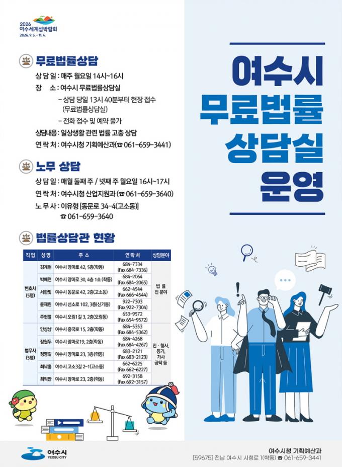 ¿©¼ö½Ã, ½Ã¹ÎÀ» À§ÇÑ ¡®¹«·á ¹ý·ü »ó´ã¡¯ Áö¿ø Áö¼Ó ¿î¿µ