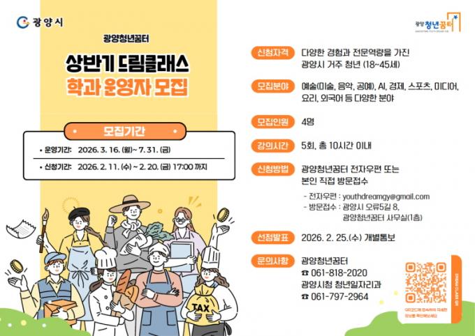 ±¤¾çû³â²ÞÅÍ, 2026 »ó¹Ý±â µå¸²Å¬·¡½º ¿î¿µÀÚ ¸ðÁý