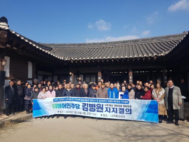 ³ªÁÖ½ÃÀÇȸ Àü¡¤ÇöÁ÷ ÀÇÀå´Ü°ú ³ªÁÖÁö¿ª ¿ø·Î¿Í °¢°è Àλç 155¸íÀº 20ÀÏ ¿ÀÀü 11½Ã ³ªÁÖ¸ñ»ç ³»¾Æ¿¡¼­ ¡°´õºÒ¾î¹ÎÁÖ´ç ³ªÁÖ¡¤È­¼ø ±¹È¸ÀÇ¿øÀ¸·Î ±èº´¿ø ¿¹ºñÈ常¦ ÁöÁö ÇÑ´Ù¡±°í ¹àÇû´Ù.