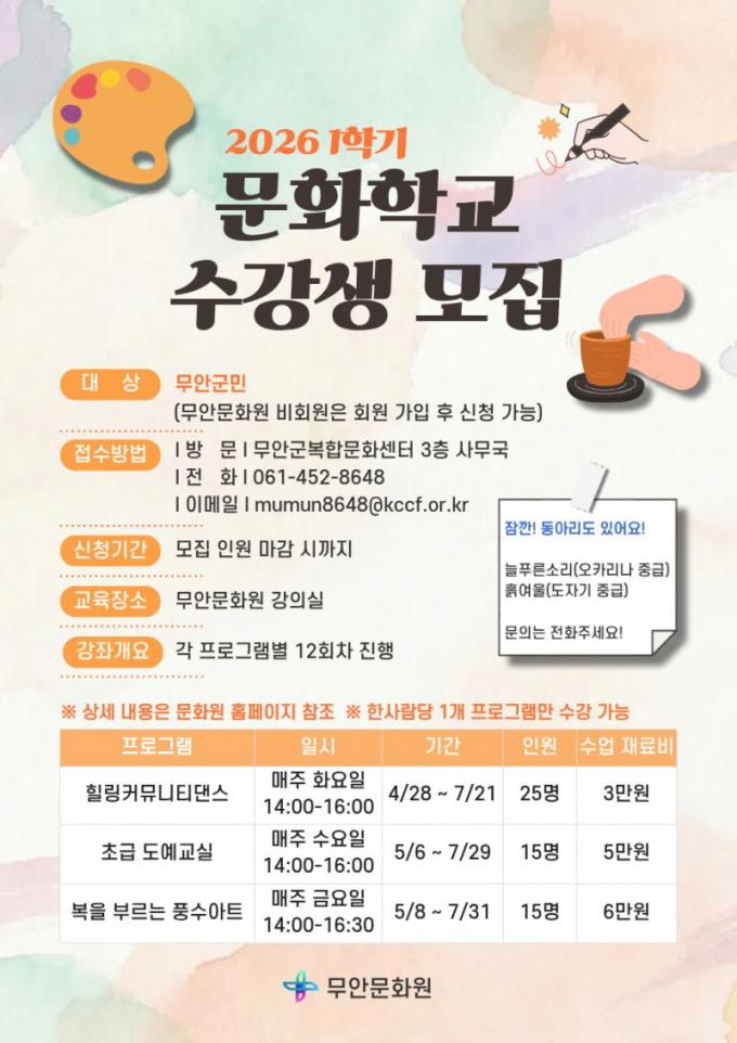 ¹«¾È¹®È¿ø, ¡®2026³â <¹®ÈÇб³> 1Çб⡯ ¼ö°»ý ¸ðÁý