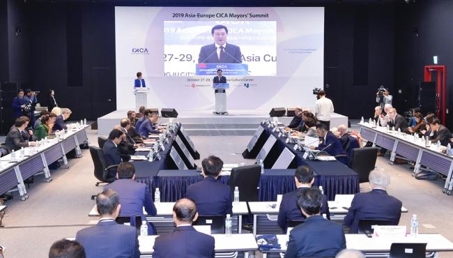 ÇÑÆí¡®2019 ¾Æ½Ã¾Æ-À¯·´ âÀÇÇõ½Åµµ½Ã¿¬´ë ½ÃÀåȸÀÇ´Â 29ÀϱîÁö ¾Æ½Ã¾Æ¹®È­Àü´ç¿¡¼­ ¿­¸®¸ç, ¾Æ½Ã¾Æ¿Í À¯·´ µî 14°³±¹ ½ÃÀåµéÀÌ ÇÑ ÀÚ¸®¿¡ ¸ð¿© âÀÇ»ê¾÷ ºÐ¾ßÀÇ µ¿¹Ý¼ºÀåÀ» ¸ð»öÇÑ´Ù. À̳¯ ±¤ÁÖ½Ã¿Í ¿µ±¹ ºê¸®½ºÅç µî 4°³ µµ½ÃÀÇ ¹®È­Ã¢ÀÇ Çõ½Åµµ½Ã ¼º°ø»ç·Ê¹ßÇ¥°¡ ÁøÇàµÆ´Ù.