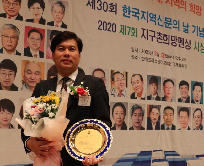 [È£³²¸ÅÀÏ´º½º = ÀÌÁ¾¹é ±âÀÚ] Àü¶ó³²µµÀÇȸ ÀÌÇõÁ¦ ÀÇ¿ø(´õºÒ¾î¹ÎÁÖ´ç, ¸ñÆ÷4)Àº Áö³­ 12ÀÏ Çѱ¹ÇÁ·¹½º¼¾ÅÍ ´ëȸÀǽǿ¡¼­ Çѱ¹Áö¿ª½Å¹®Çùȸ°¡ ¼±Á¤ÇÑ ¡®2020 Áö±¸ÃÌ Èñ¸ÁÆæ»ó¡¯À» ¼ö»óÇß´Ù.