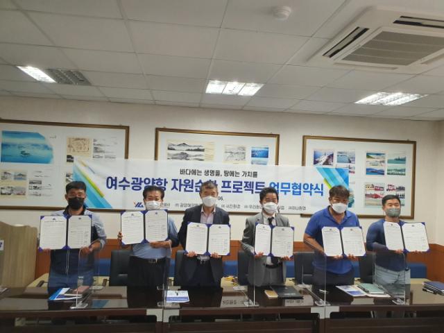 ÃÖ±Ù ¿¸° ¡®¿©¼ö±¤¾çÇ× ÀÚ¿ø¼øÈ¯ ÇÁ·ÎÁ§Æ® ¾÷¹«Çù¾à½Ä¡¯¿¡¼ ÃÖ¿¬Ã¶ ¿©¼ö±¤¾çÇ׸¸°ø»ç °æ¿µº»ºÎÀå(»çÁø ¿ÞÂÊ¿¡¼ 3¹øÂ°)°ú ¿©¼ö±¤¾ç¸¸±Ç À¯Ã¢Ã»¼Ò¾÷ü °ü°èÀÚµéÀÌ ¾÷¹«Çù¾àÀ» ü°áÇÑ µÚ ±â³äÃÔ¿µÀ» Çϰí ÀÖ´Ù.