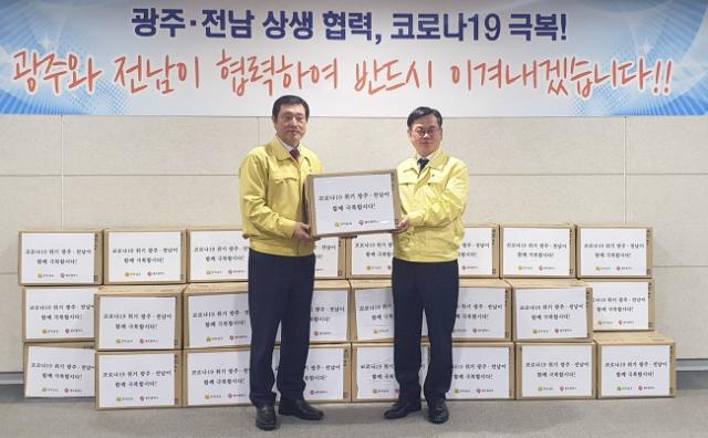 ÇÑÆí, Àü¶ó³²µµ´Â ±¤ÁÖ¿Í Àü³²ÀÌ Çù·ÂÇØ Äڷγª19¸¦ ÇÔ²² ±Øº¹Çسª°¡ÀÚ´Â ¶æÀ» ´ã¾Æ ±¤Áֽÿ¡ ¸¶½ºÅ© 3¸¸°³¸¦ Àü´ÞÇß´Ù