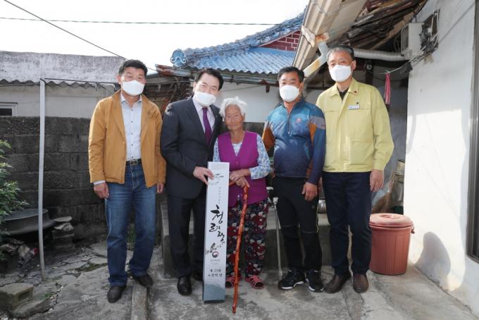 ÀåÈﱺ, 100¼¼ Àå¼ö ¾î¸£½Å¿¡°Ô Àå¼öÁöÆÎÀÌ Ã»·ÁÀå Àü´Þ