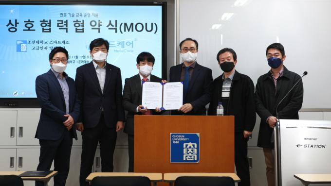 Á¶¼±´ëÇб³, ½º¸¶Æ® ±â¼ú ÀÎÀû ÀÚ¿ø ¾ç¼º°ú Ãë¾÷Áö¿ø ¾÷¹«Çù¾à ü°á(¿ÞÂʺÎÅÍ ±â°è°øÇаú ±èâ·¡ ±³¼ö, °ø°ú´ëÇÐ ±è´ëÇö ÇÐÀå, ¢ß ¸ôµåÄɾî ÃÖÇö¿ì ´ëÇ¥ÀÌ»ç, ½º¸¶Æ®Á¦Á¶ °í±ÞÀÎÀç ¾ç¼º¼¾ÅÍ ¹ÚÁ¤¿ì ¼¾ÅÍÀå, ±â°è°øÇаú ¼ºÀ±°æ ÇаúÀå, ±â°è°øÇаú °ûÀ纹 ±³¼ö)