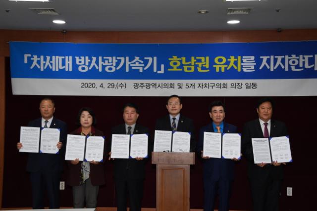 ±¤ÁÖ½ÃÀÇȸ ±èµ¿Âù ÀÇÀå°ú 5°³ ÀÚÄ¡±¸ ÀÇȸ ÀÇÀå(µ¿±¸ÀÇȸ ¹ÚÁ¾±Õ, ¼­±¸ÀÇȸ °­±â¼®, ³²±¸ÀÇȸ Á¶±âÁÖ, ºÏ±¸ÀÇȸ °íÁ¡·Ê, ±¤»ê±¸ÀÇȸ ¹èÈ«¼®)Àº 29ÀÏ, ¡®4¼¼´ë ¿øÇü ¹æ»ç±¤°¡¼Ó±â¡¯ÀÇ È£³²±Ç À¯Ä¡¸¦ ÁöÁöÇÏ´Â ¼º¸íÀ» ¹ßÇ¥Çß´Ù.