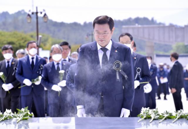 [È£³²¸ÅÀÏ´º½º = ÀÌÁ¾¹é ±âÀÚ] À̿뼷 ±¤ÁÖ±¤¿ª½ÃÀåÀÌ17ÀÏ ¿ÀÀü ºÏ±¸ ¿îÁ¤µ¿ ±¹¸³5¡¤18¹ÎÁÖ¹¦Áö¿¡¼­ ¿­¸° 'Á¦40ÁÖ³â 5¡¤18¹ÎÁßÇ×Àï Ã߸ðÁ¦'¿¡ Âü¼®ÇØ À¯°¡Á·À» À§·ÎÇß´Ù.