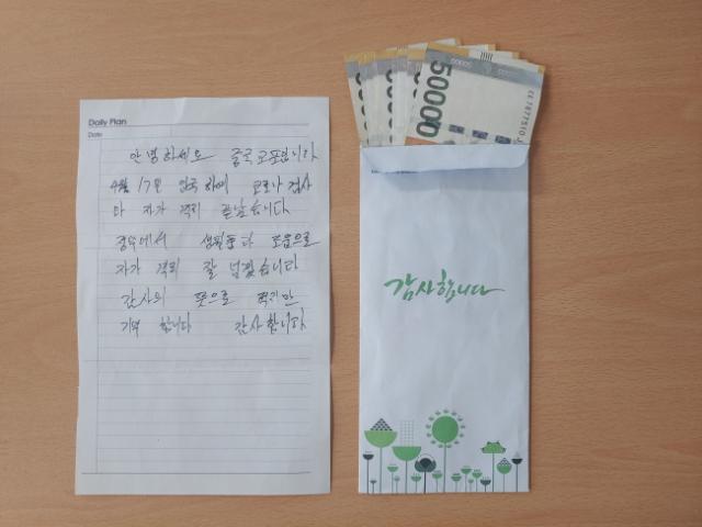 À͸íÀÇ ÀÔ±¹ Áß±¹±³Æ÷, ±¤»ê±¸¿¡ °¨»çÀÇ ¼Õ ÆíÁö¿Í Çö±Ý 50¸¸¿ø ±âºÎ