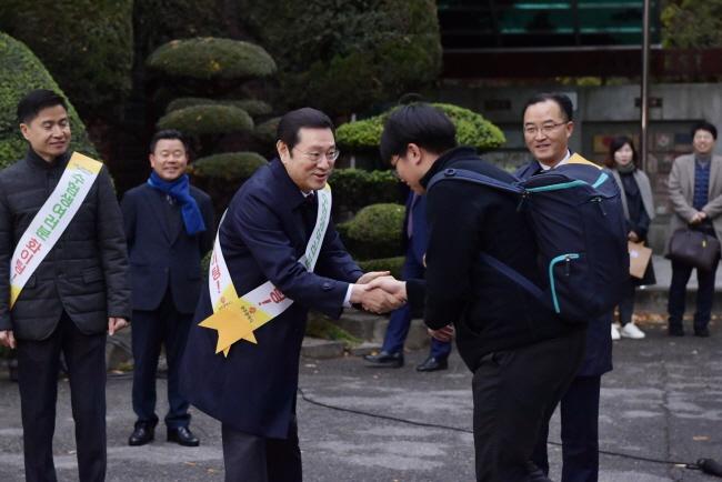 [È£³²¸ÅÀÏ´º½º = ÀÌÁ¾¹é ±âÀÚ]À̿뼷 ±¤ÁÖ±¤¿ª½ÃÀåÀÌ 2020Çг⵵ ´ëÇмöÇдɷ½ÃÇèÀÏÀÎ 14ÀÏ ¿ÀÀü ¼­±¸ È­Á¤µ¿ 26Áö±¸ Á¦20½ÃÇèÀå ±¤´ö°íµîÇб³ Á¤¹®¾Õ¿¡¼­ ¼öÇè»ýµéÀ» ÀÀ¿øÇϰí ÀÖ´Ù.