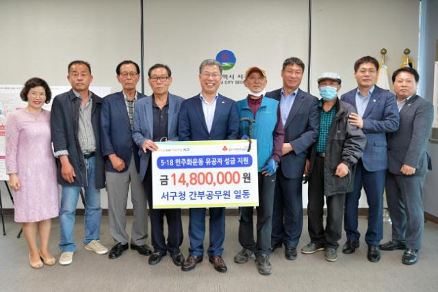 ±âºÎ¿îµ¿¿¡´Â ¼­±¸Ã» 5±ÞÀÌ»ó °£ºÎ°ø¹«¿ø 64¸íÀÌ Âü¿©, ÃÑ 14,800õ¿øÀÇ ¼º±ÝÀ» ¸ð±ÝÇß´Ù. ¸ð±ÝµÈ ±Ý¾×Àº »çȸº¹Áö°øµ¿¸ð±Ýȸ¸¦ ÅëÇØ ¼­±¸ °ü³» »ýȰÀÌ ¾î·Á¿î 5¡¤18 À¯°øÀںе鲲 Áö¿øµÉ ¿¹Á¤ÀÌ´Ù. ¾Õ¼­ ¼­´ë¼® ±¸Ã»ÀåÀº 4¿ùºÎÅÍ ¿ù ±Þ¿© 30%¸¦ 4°³¿ù°£ ±âºÎÇÑ ¹Ù ÀÖ´Ù.