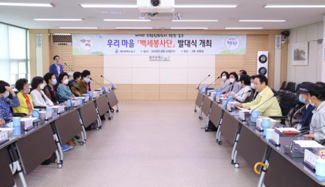 [È£³²¸ÅÀÏ´º½º = ÀÌÁ¾¹é ±âÀÚ] ±¤Áֽà µ¿±¸(ûÀå ÀÓÅÃ)°¡ ¾î¸£½Åµé »îÀÇ °æÇè°ú °¢ÀÚ °¡Áö°í ÀÖ´Â Àç´ÉÀ» »çȸ¿¡ °øÇåÇÒ ±âȸ¸¦ Á¦°øÇϰí ÀÚÁ¸°¨À» ȸº¹Çϱâ À§ÇÑ ¡®¿ì¸®¸¶À» ¹é¼¼ºÀ»ç´Ü¡¯À» ²Ù¸®°í ¹ß´ë½ÄÀ» °¡Á³´Ù°í 24ÀÏ ¹àÇû´Ù.