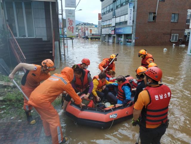 Àü³²¼Ò¹æº»ºÎ¿¡ µû¸£¸é 9ÀÏ 7½Ã ±âÁØ ÁýÁßÈ£¿ì °ü·Ã 6õ 96°ÇÀÇ ½Å°í¸¦ Á¢¼ö ¹Þ¾Ò´Ù. ÀÌ¿Í °ü·ÃÇØ»ê»çÅ ¹× ħ¼ö µî ÇÇÇØÇöÀå¿¡¼­ ÃÑ 507¸íÀ» ±¸Á¶ÇßÀ¸¸ç, ³ªÁÖ ¼Û¿ùµ¿ Àα٠ÁÖÅð¡ µî 114°³¼Ò¿¡ ´ëÇÑ 731Åæ ¹è¼öÁö¿ø Ȱµ¿À» ÆîÃÆ´Ù. ħ¼öµÈ ÁÖÅà ¹× µµ·Î µî¿¡ ´ëÇØ¼­µµ 748°ÇÀÇ ¾ÈÀüÁ¶Ä¡¸¦ ½Ç½ÃÇß´Ù.