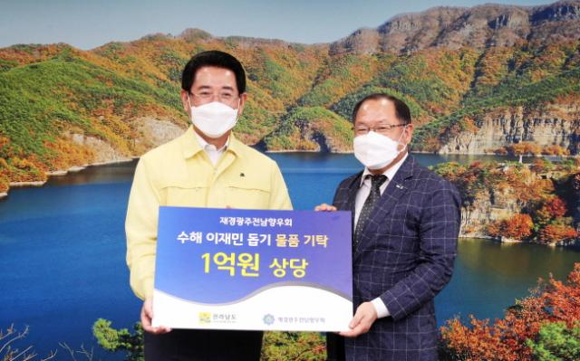 [È£³²¸ÅÀÏ´º½º = ÀÌÁ¾¹é ±âÀÚ] Àü¶ó³²µµ´Â 31ÀÏ Àç°æ±¤ÁÖÀü³²Çâ¿ìȸ(ȸÀå ÃÖ´ë±Ô)°¡ ÁýÁßÈ£¿ì·Î ¾î·Á¿òÀ» °ÞÀº °íÇâ¿¡ Èñ¸Á°ú ¿ë±â¸¦ Àü´ÞÇϱâ À§ÇØ ¼öÇØº¹±¸ Áö¿ø¹°Ç°À» Àü´ÞÇß´Ù°í ¹àÇû´Ù.