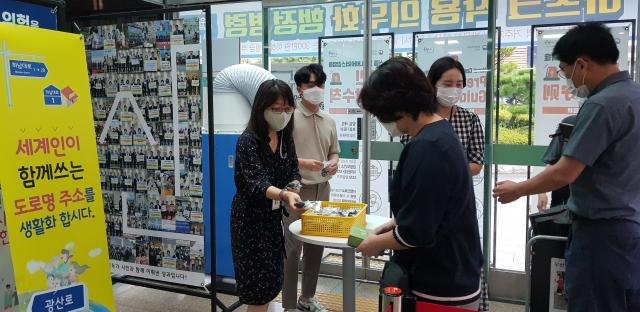 [È£³²¸ÅÀÏ´º½º = ÀÌÁ¾¹é ±âÀÚ] ±¤ÁÖ ±¤»ê±¸(±¸Ã»Àå ±è»ïÈ£)°¡ Äڷγª19 È®»ê ¹æÁö¿Í µµ·Î¸íÁÖ¼Ò È«º¸¸¦ À§ÇØ ¸¶½ºÅ© ¸ñ°ÉÀÌ 5,000°³¸¦ Á¦ÀÛÇØ 2ÀϺÎÅÍ ±¸Ã» ÀÔ±¸ µî¿¡¼­ ½Ã¹Îµé¿¡°Ô ³ª´²ÁÖ°í ÀÖ´Ù.