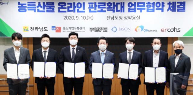 [È£³²¸ÅÀÏ´º½º = ÀÌÁ¾¹é ±âÀÚ] Àü¶ó³²µµ´Â 10ÀÏ eÄ¿¸Ó½º ½ÅÈï°­ÀÚÀÎ Áß¼Ò±â¾÷À¯Åë¼¾ÅÍ, ¿ì¾ÆÇÑÇüÁ¦µé, Á¦À̽¼±×·ì, ¿Âä³Î, ¿¡¸£ÄÚ½º µî 5°³ ±â¾÷°ú Àü³² ³óƯ»ê¹° ¿Â¶óÀÎ ÆÇ·ÎÈ®´ë¸¦ À§ÇÑ ¾÷¹«Çù¾àÀ» ü°áÇß´Ù.