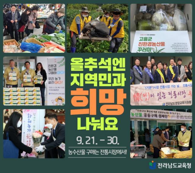 Àü³²µµ±³À°Ã»Àº ¡®¿Ã Ãß¼®¿£ Áö¿ª¹Î°ú Èñ¸Á ³ª´²¿ä¡¯¶ó´Â Á¦¸ñÀ¸·Î ÁøÇàµÇ´Â À̹ø Ä·ÆäÀÎÀÇ È¿°ú¸¦ ³ôÀ̱â À§ÇØ 22°³ ½Ã±º ±³À°Áö¿øÃ»ÀÌ ¿¬ÇÕÇØ ÇØ´ç Áö¿ª Ư»ê¹° ±¸¸Å¸¦ µ¶·ÁÇÏ´Â ¿µ»óÀ» Á¦ÀÛÇØ »çȸ°ü°è¸Á¼­ºñ½º(SNS)¸¦ ÅëÇØ È«º¸ÇÑ´Ù.