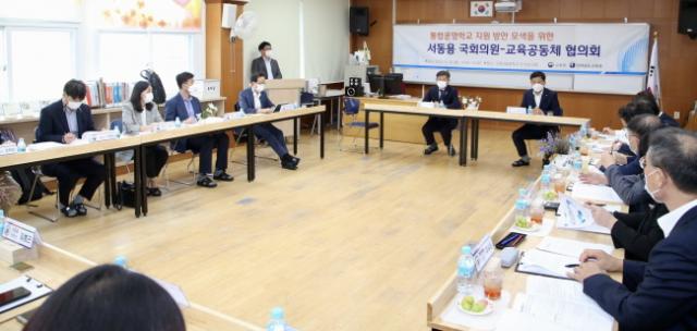 ÀÌ¿Í ÇÔ²², µµ±³À°Ã»Àº ÅëÇÕÇб³ ±³À°°úÁ¤ ¿î¿µÀÇ °É¸²µ¹·Î ÁöÀûµÈ °ü·Ã ¹ý·É Á¤ºñ ÀÛ¾÷µµ º»°ÝÈ­ÇÏ°í ³ª¼¹´Ù. 28ÀÏ(¿ù) ¿ÀÈÄ ±¸·Ê »êµ¿ÁßÇб³¿¡¼­ Àå¼®¿õ ±³À°°¨°ú ¼­µ¿¿ë ±¹È¸ÀÇ¿ø, ±³À°ºÎ °ü°èÀÚ, Áö¿ª ÁֹΠµîÀÌ Âü¼®ÇÑ °¡¿îµ¥ ¿­¸° ÅëÇտÇб³ Áö¿ø¹æ¾È ¸¶·ÃÀ» À§ÇÑ ÇöÀå ÇùÀÇȸ°¡ ±× Ãâ¹ßÁ¡ÀÌ´Ù.