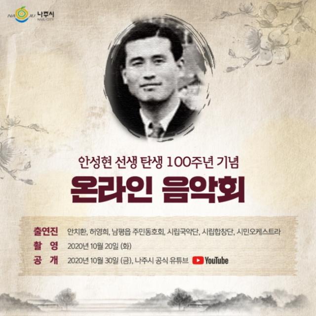 ³ªÁÖ½Ã, ¾È¼ºÇö ź»ý 100Áֳ⠿¶óÀÎ ±â³äÀ½¾Çȸ ¹æ¿µ