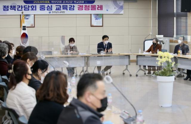 Àå¼®¿õ Àü¶ó³²µµ±³À°°¨ÀÌ 16ÀÏ(¿ù) ¹«¾È±³À°Áö¿øÃ»À» ã¾Æ ¹«¾È Áö¿ª Çкθð 32¸í°ú Àü³²±³À° Á¤Ã¥¿¡ ´ëÇÑ Åä·ÐÀÇ ½Ã°£À» °¡Á³´Ù. ÀÌ ÀÚ¸®¿¡´Â ±è¶õ ¹«¾È±³À°Àå, ±è»ê ¹«¾È±º¼ö, ÀÌÇýÀÚ¡¤³ª±¤±¹ Àü³²µµÀÇ¿øµµ Âü¼®ÇØ ±íÀº °ü½ÉÀ» Ç¥Çß´Ù.