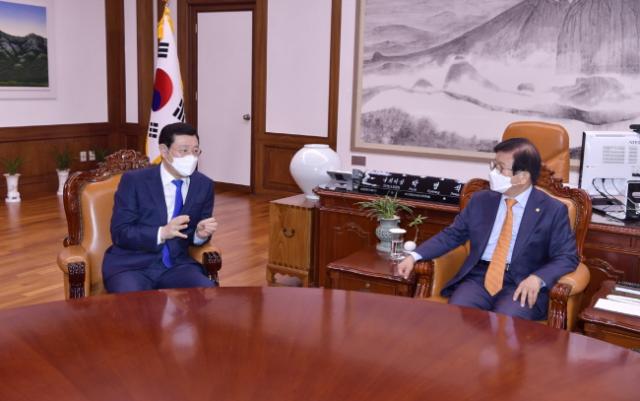 À̾î ÀÌ ½ÃÀåÀº ±¹È¸¸¦ ¹æ¹®ÇØ ¹Úº´¼® ±¹È¸ÀÇÀå°ú Á¤¼ºÈ£ ¿¹°áÀ§¿øÀå, ¼­µ¿¿ë‧¾çÇâÀÚ ¿¹°áÀ§¿øÀ» Â÷·Ê·Î ¸¸³ª ½Ã ÁÖ¿ä »ç¾÷ ¿¹»ê¿¡ ´ëÇÑ ±¹È¸ Áõ¾×À» ¿äûÇÑ µ¥ ÀÌ¾î ±èų⠴õºÒ¾î¹ÎÁÖ´ç ¿ø³»´ëÇ¥¿Í ÁÖÈ£¿µ ±¹¹ÎÀÇÈû ¿ø³»´ëÇ¥µµ ¸¸³ª ¿¹»ê È®º¸¿Í Áö¿ªÇö¾È °ü·Ã ¹ý·ü °³Á¤¿¡ °üÇÑ ´ç Â÷¿øÀÇ Àû±ØÀûÀÎ ÇùÁ¶¸¦ ¿äûÇß´Ù.