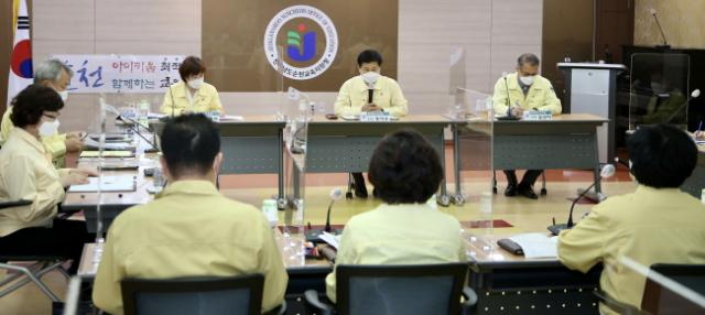 Àå¼®¿õ ±³À°°¨Àº À̳¯ ¿ÀÈÄ ¼øÃµ±³À°Áö¿øÃ»¿¡¼­ ¼øÃµ¡¤¿©¼ö¡¤±¤¾ç µî Àü³² µ¿ºÎ±Ç 3°³ Áö¿ª±³À°Áö¿øÃ» ±³À°ÀåȸÀǸ¦ ±ä±Þ ¼ÒÁýÇϰí, À̵é Áö¿ªÀÇ Äڷγª19 ¹æ¿ª »óȲÀ» Á¡°ËÇß´Ù.