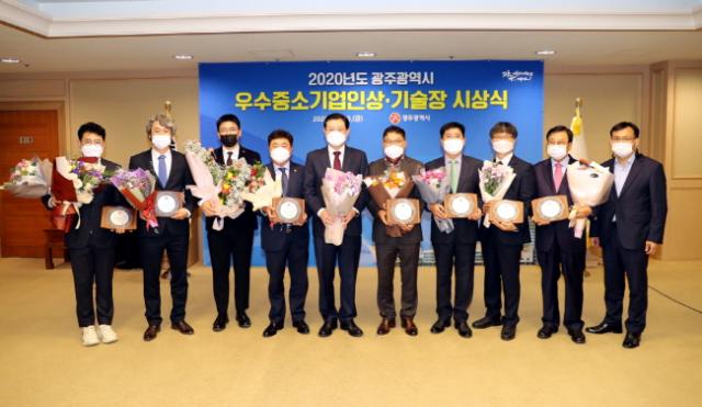 [È£³²¸ÅÀÏ´º½º = ÀÌÁ¾¹é ±âÀÚ] ±¤ÁÖ±¤¿ª½Ã´Â 2020³â ¿ì¼öÁß¼Ò±â¾÷ÀÎ 5¸í°ú ±â¼úÀå 3¸íÀ» ¼±Á¤Çϰí 20ÀÏ ½Ãû ºñÁî´Ï½º·ë¿¡¼­ »óÆÐ¸¦ ¼ö¿©Çß´Ù.