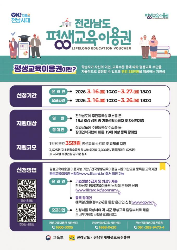 Àü¶ó³²µµ, 2026 Àú¼ÒµæÃþ.Àå¾ÖÀÎ Æò»ý±³À°ÀÌ¿ë±Ç ½Åû Á¢¼ö