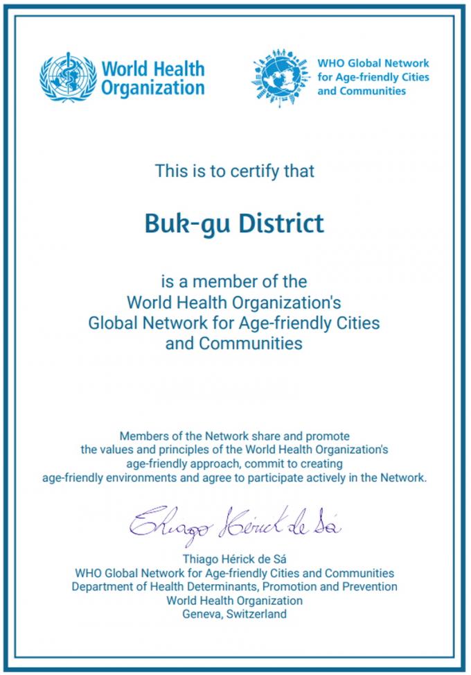 ±¤ÁÖ±¤¿ª½Ã ºÏ±¸, ¼¼°èº¸°Ç±â±¸(WHO) °í·Éģȵµ½Ã ±¹Á¦³×Æ®¿öÅ© Á¦2±â ÀÎÁõ¹Þ¾Æ