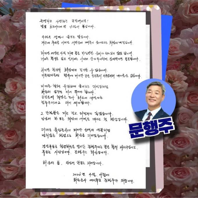 ¹®ÇàÁÖ È¼ø±º¼ö ¿¹ºñÈĺ¸, ¡®4¿ùÀÇ ¼Õ ÆíÁö¡¯ °ø°³, û·Å°ú Èñ¸ÁÀÇ ¸Þ½ÃÁö ÀüÇØ